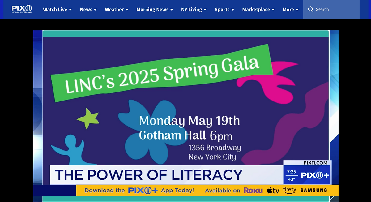 April is National Diversity Month and on Thursday, April 17, PIX 11 News captured the essence of LINC’s 5th annual Diversity Through Literacy campaign on live TV. Anchors Dan Mannarino and Vanessa Freeman interviewed LINC’s South Jamaica Neighborhood Manager, Demelza Wilson and children’s author and founder of Encantos, Susie Jaramillo, to raise awareness about the importance of representation in children’s literature.