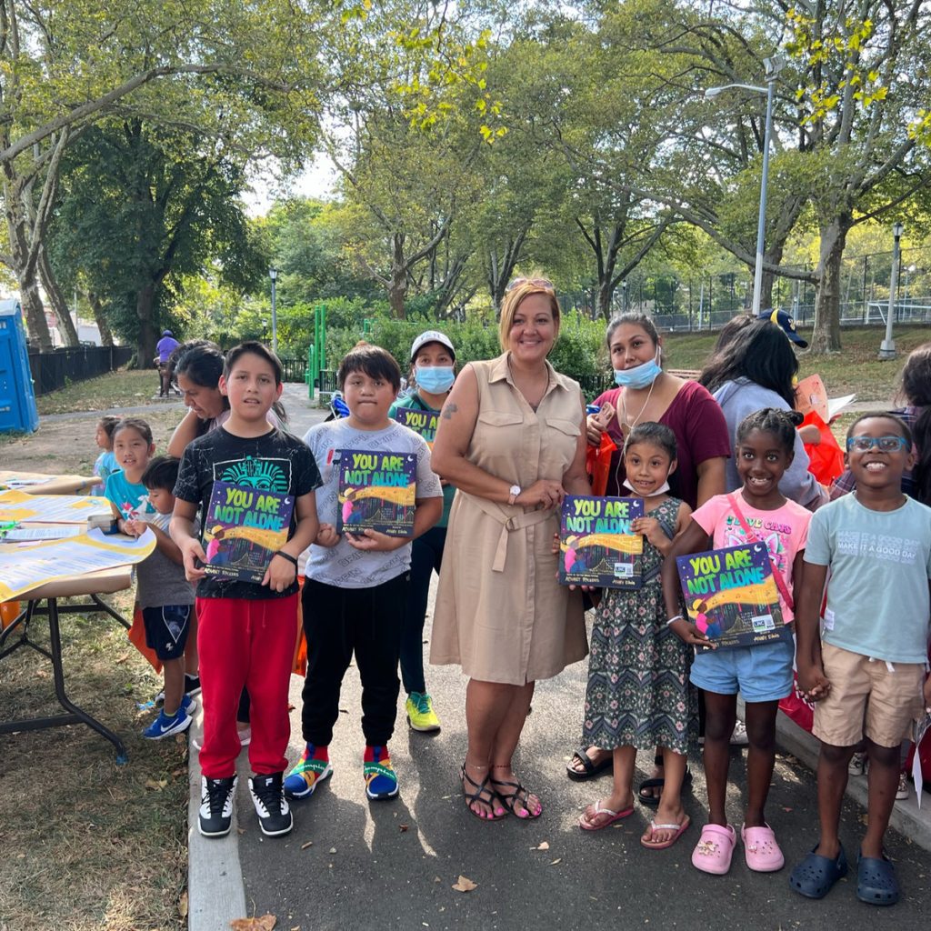 At the center of each neighborhood’s Back to School celebration was a read-aloud of You Are Not Alone by authors Kaitlin McGaw and Tommy Shepherd, a story that reassures kids that they belong, their unique identities are to be loved, and they have a responsibility to look out for each other. This story invites readers of all kinds to unite, much like the Reads Pledge brings together families and businesses in each of the NYC Reads communities.
